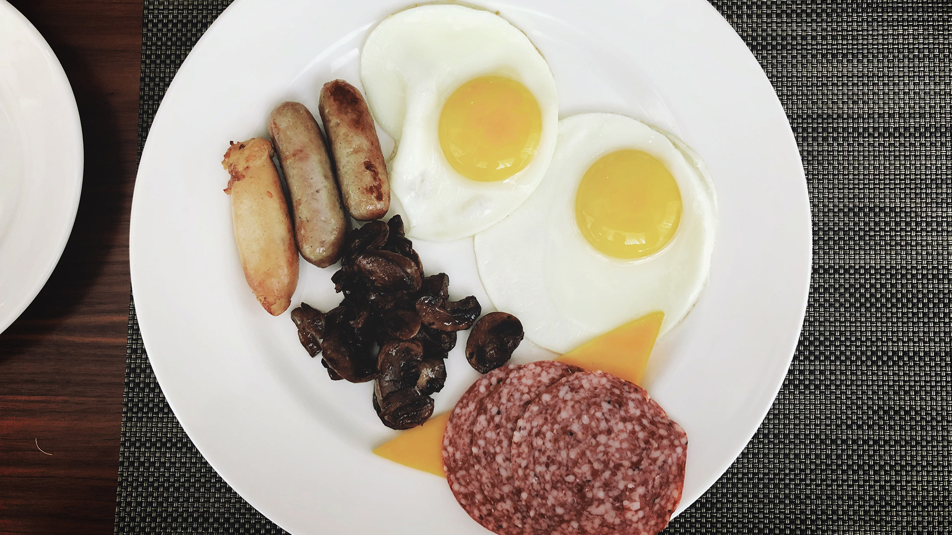 The next day I had breakfast at the hotel. It was not hard to find some healthy options in there. You might argue that these sausages in the photo below don’t necessarily belong to a healthy diet. You might be right, but those are the best out of what I could find in the buffet having some decent protein and animal fat. Processed food it is, but better than eating Nutella and waffles :)