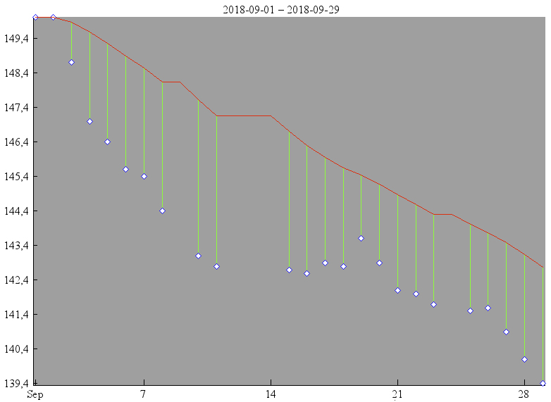 If you look at the chart above the trend line is always pointing down. However, between 14th to 21st weight recordings were not that pretty. I kept getting numbers around 142kgs/313lbs for a week. Based on daily weight records I had lost only 0.7kg/1.5lbs during week 3. I knew it was a matter of getting things settled. The first two weeks I lost weight fast, and that had to be balanced. Just at the end of week 4, I started dropping piles of weight again :) After four weeks I’m now 139.4kgs/307lbs with a total loss of 10.6kgs/23.3lbs.