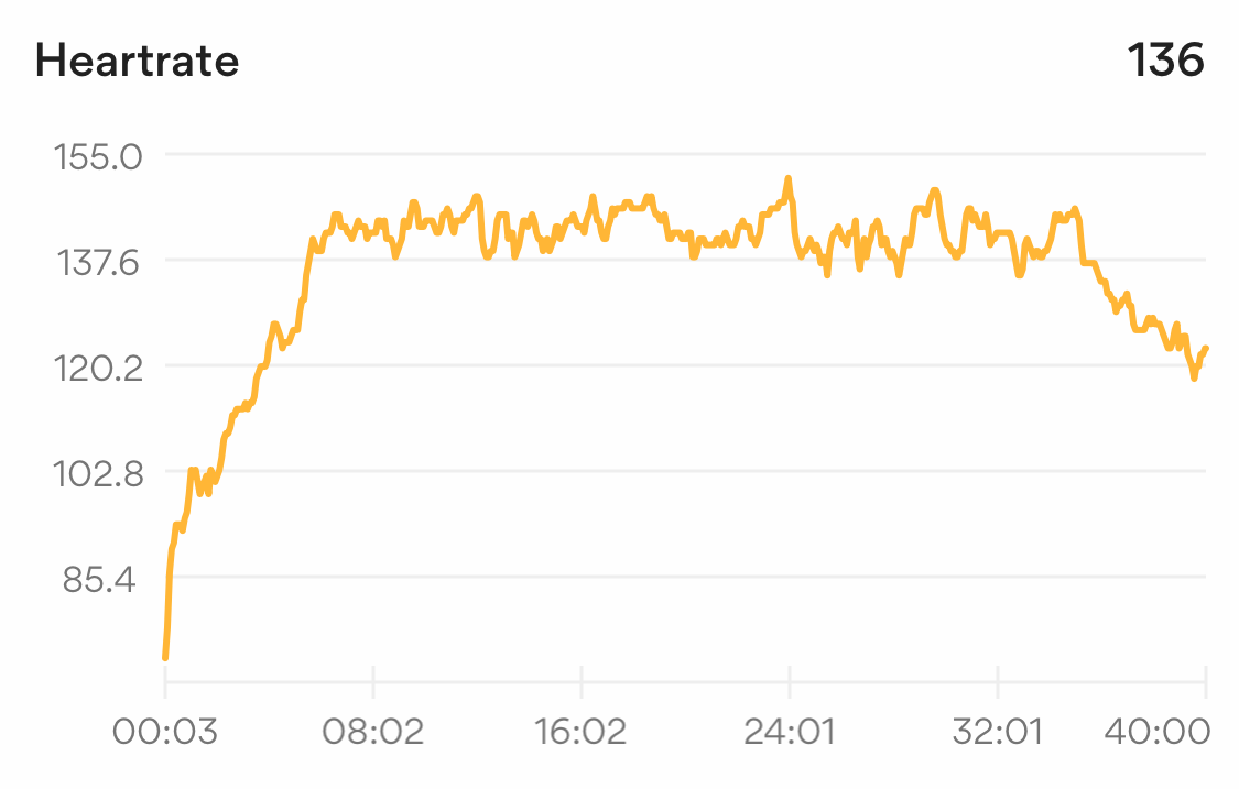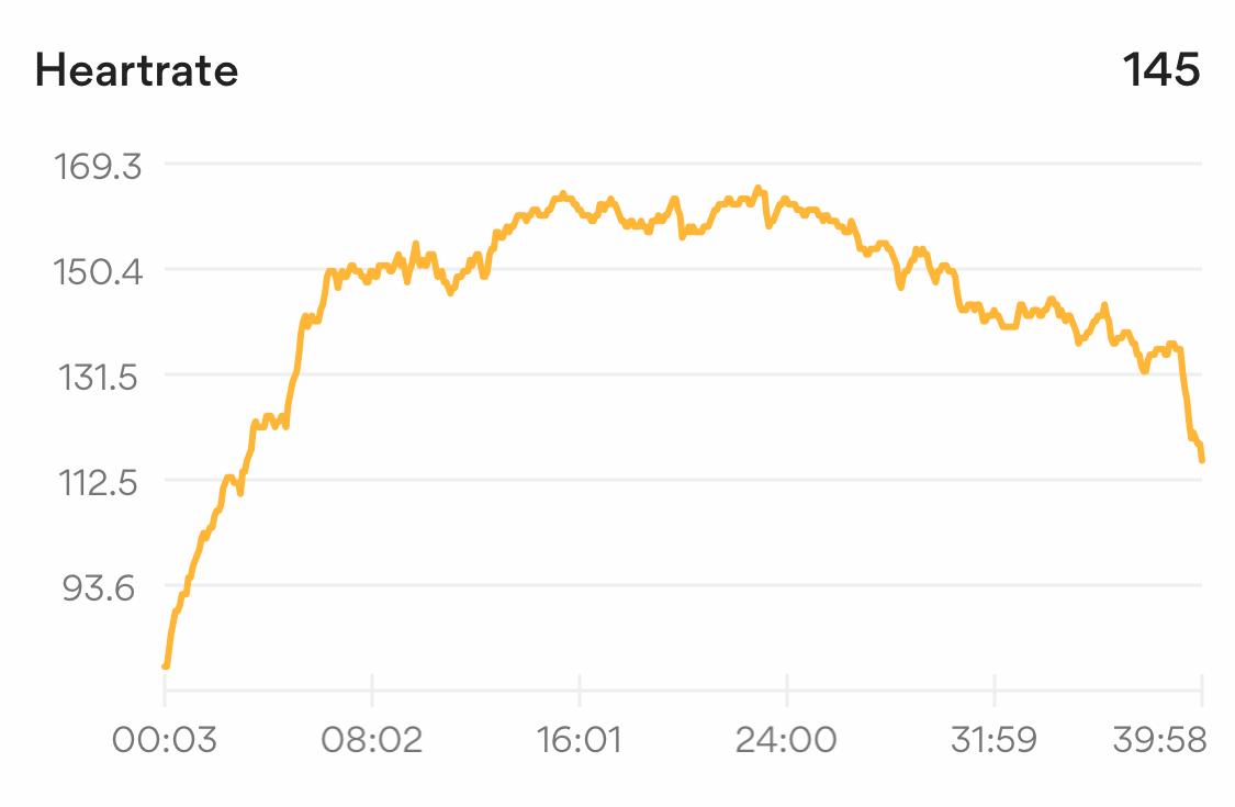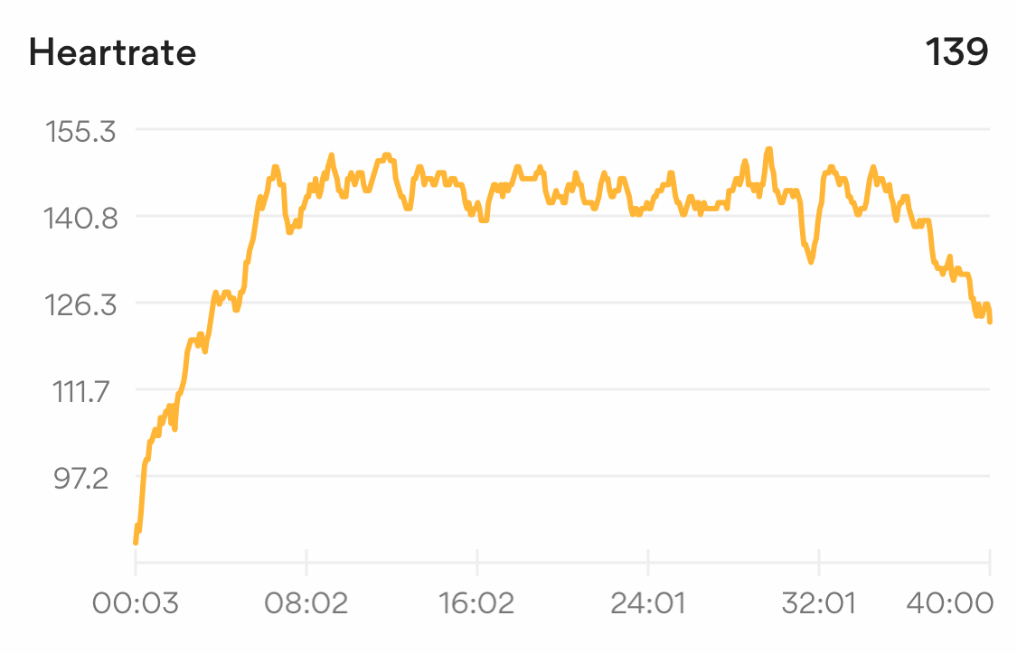 The second round of cardio was much more tamed with an average HR 136. I stayed between the 140-150bpm range.