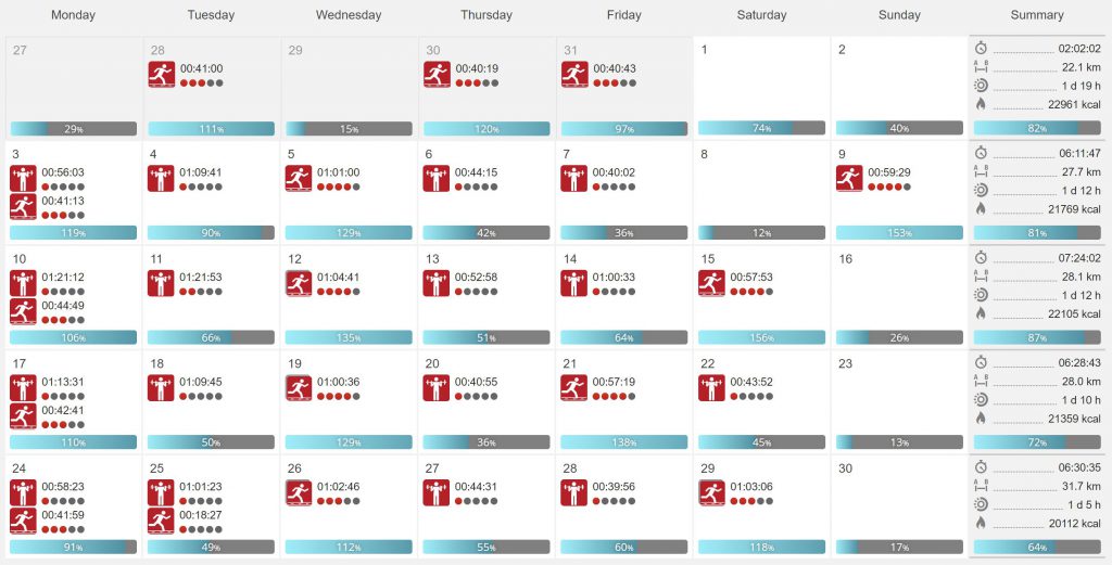 The change here is about my cardio days. In June I had three cardio days with 40+60+60 minutes long sessions. That left some of my weight training days pretty sedentary from a cardio perspective. I decided to spread the minutes across four days and hit my minimum 40 minutes cardio limit in four days instead of three. That’s all :) My runs will be a little shorter, but I will enjoy the benefits of cardio in more days of the week. Here is a TED video that might influence you to do the same. :)