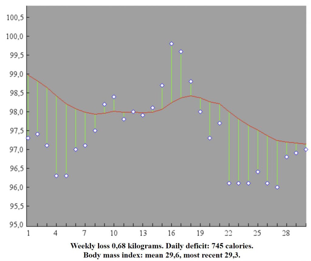The month of fluctuations! First off, keep in mind that this is the first month of my weight lifting plan, and I was expecting to store more muscle glycogen and water, creating a little spike on this chart. I’m not sure that’s the reason for the jump above though. For the last three months, I’m strictly using MyFitnessPal to record all I eat and track calories. First, I wasn’t crazy about macronutrients and simply focused on 2000 calories/day and trying to stick with Fat + Protein as much as I can. This month I swapped to a 2200 cal/day 40-40-20 macronutrient ratio where 40% of calories are from protein, 40% from carbs and 20% from fat. The increase in calories was simply because I was increasing activity days from 4 to 6 a week. As always I kept some flexibility there and for some days let my protein or fat intake increase compared to lower carb intake. The 40-40-20 plan isn’t something new. I’m just lucky enough to know that it is the best plan for me based on my past experience, tests, and trials on my own body. With that said, the spike isn’t about any of this. Between 7th and 16th of the month, I took the majority of my carbs from barley instead of oats. That’s it! Go figure! Once I switched back to oats, I started losing weight like crazy. To be honest, there is no way either the weight gain from barley or weight loss from oat can be fat. You can’t loos or gain fat that fast! That should be water! Right? I have no clue. I didn’t have the guts to keep the test going once I saw so much gain from barley. I had to report some weight loss on my monthly update! :)
