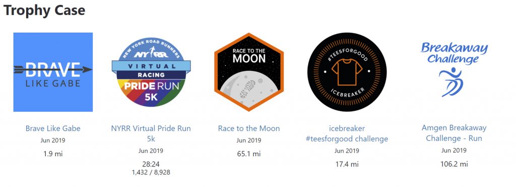 As mentioned in last months update :) I moved over to Strava. Besides all the reasons pushing me to Strava, I discovered something that wasn’t in my initial list. Gamification and Virtual Races. There is the concept of “challenges” in Strava that you can join and chase to complete. They have some standard challenges like “Run 10K in June” that repeats every month, and that makes me feel like a rabbit :) I don’t like repeating problems. I want them to be gone once accomplished :D What I found myself joining are challenges that are somehow unique and have good looking trophies :) Oh yeah, once you complete a challenge you get a trophy to show off on your profile page (gamification there is). I joined some other challenges that were simply representing virtual races organized by 3rd parties. Wow! Love it!
