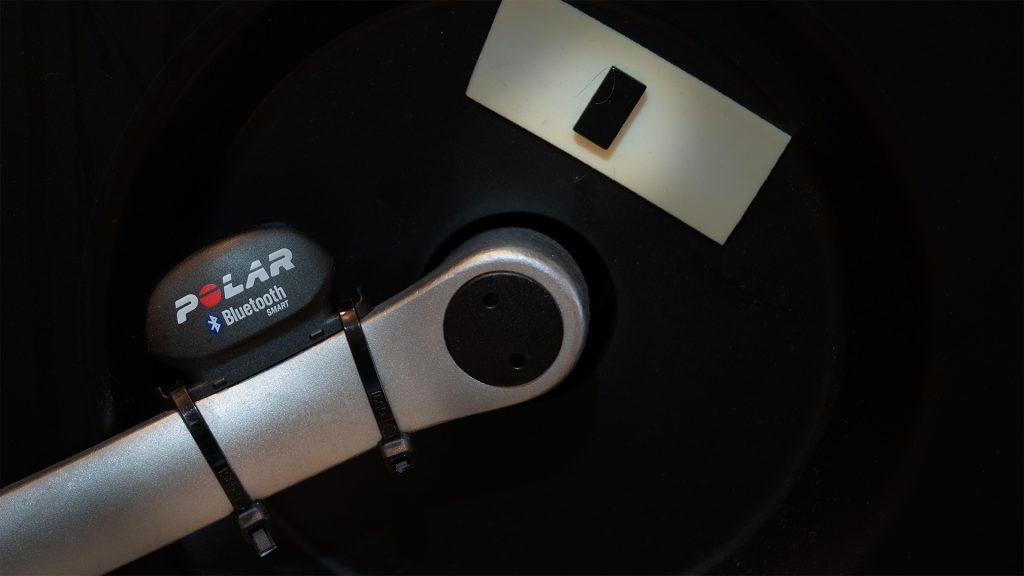 I’m using Polar Cadence Sensor to push RPM onto my watch. See the retrofit above :) That magnet is staying there well with a 3M stripe. The cadence sensors usually come with a speed sensor as well. In the case of an indoor bicycle, there is no transmission, so the speed sensor ends up reporting the same data as cadence, not really helpful. In my case, I have only installed the cadence sensor. Keep in mind that right now Polar Beat does not support cadence for indoor cycling. You can use Wahoo Fitness app to record cadence data with your phone. In my setup, I’m using my watch to record it all.