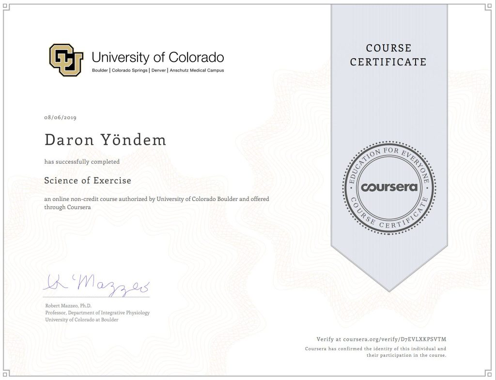 For the last two months, I managed to get some educational progress specific to health topics. This month I got another Coursera course completed. It was the “Science of Exercise” course from the University of Colorado. Unfortunately, I will need to put this tradition on hold for a while. I have some non-health related courses in my queue that I have to get to.